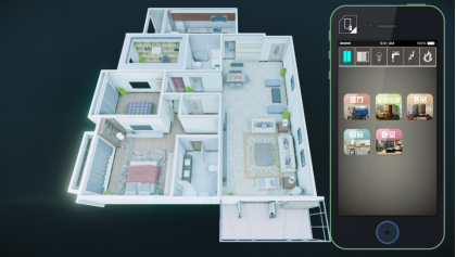 金螳螂自主開發的智慧家居系統,可通過手機平臺中實現對家居的空調、電視、音響、監控、安全門、窗、熱水器、冰箱等的控制。